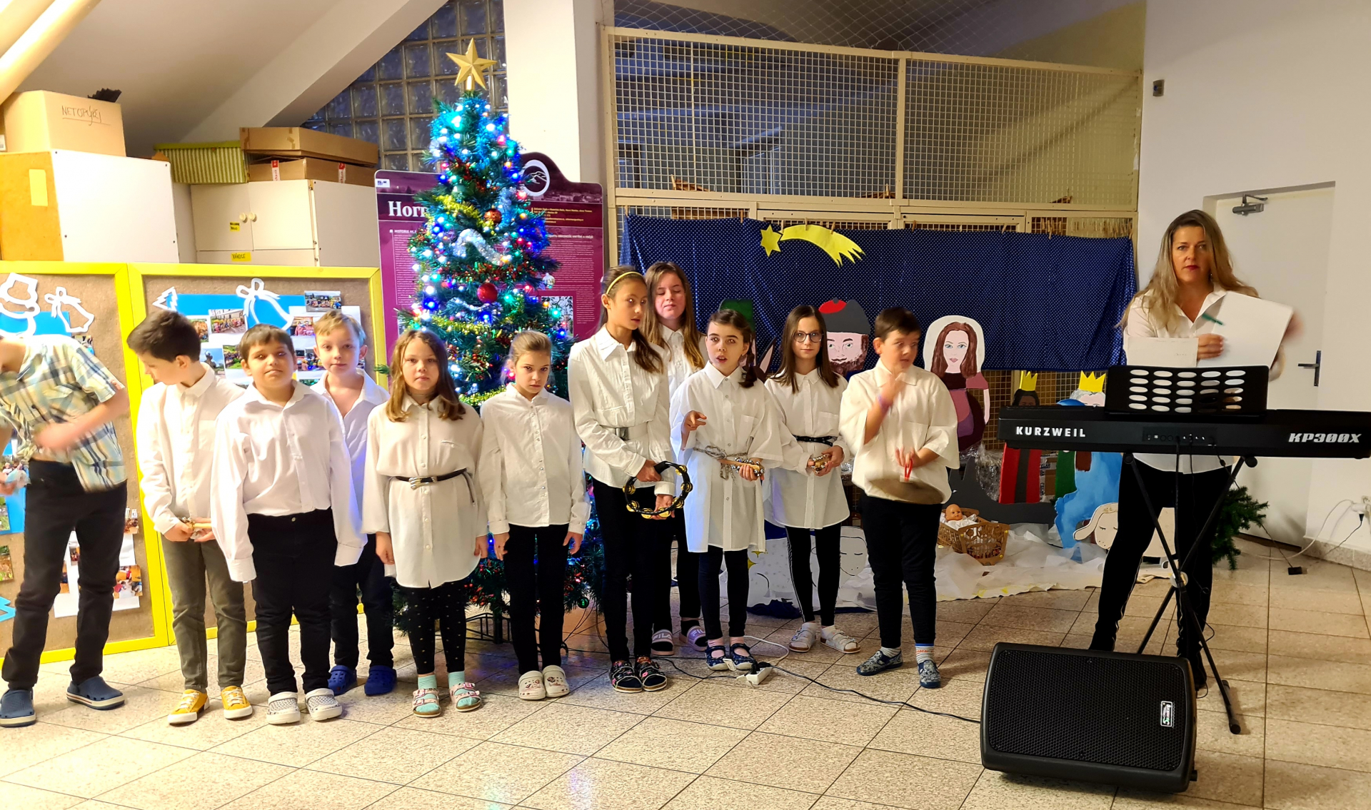 Připrava zpěvaček a zpěváků ze 4. a 5. třidy na vánočně-písničkový pozdrav rodičům