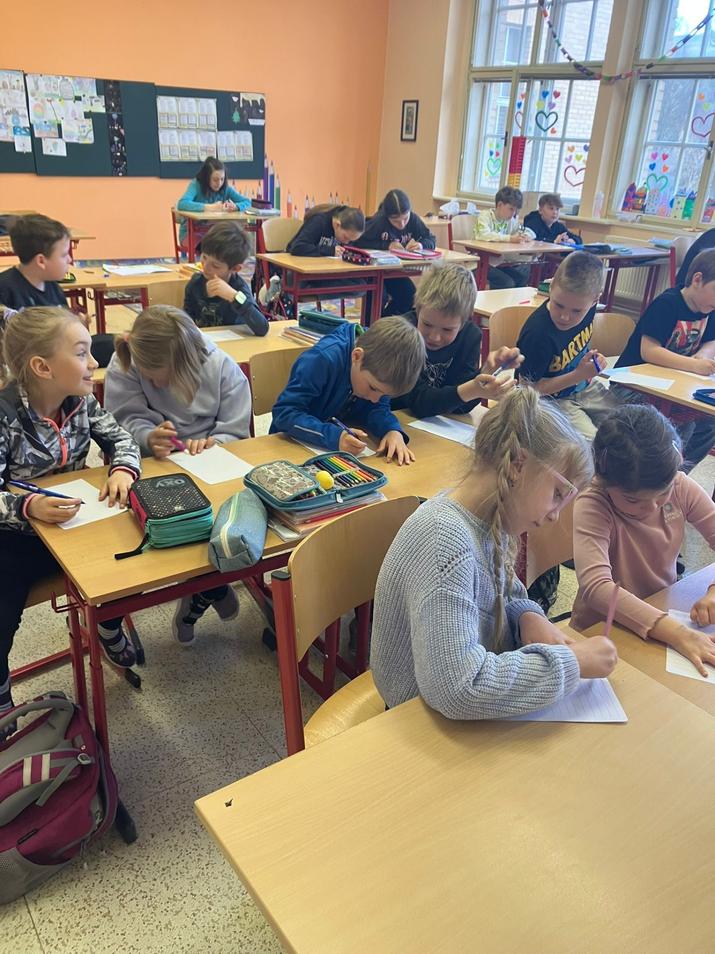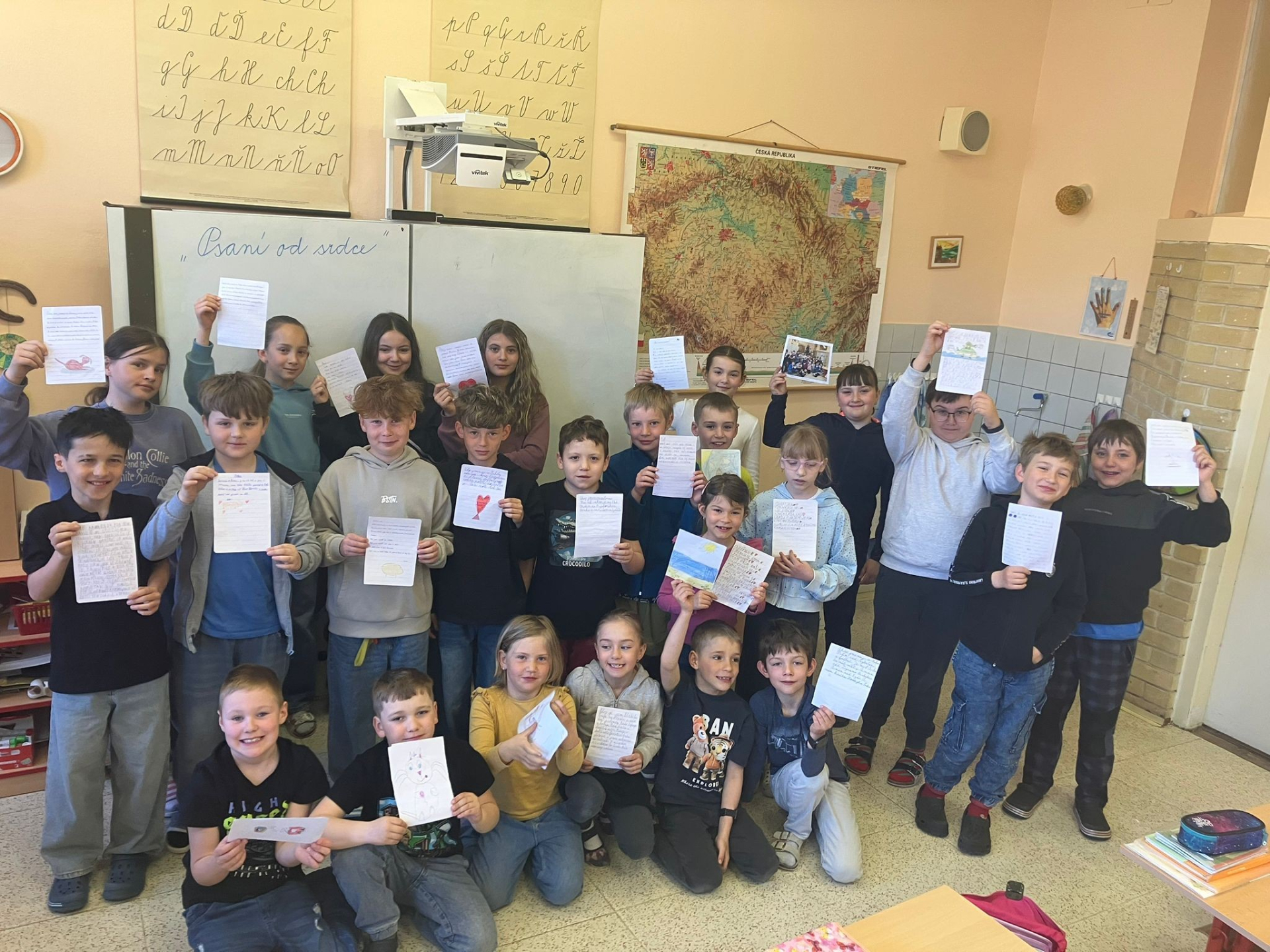 Žáci a žákyně 2. a 5. třídy společně s paní učitelkou třídní a paní asistentkou se zúčastnili projektu od Diakonie - Psaní od srdce ♥️.